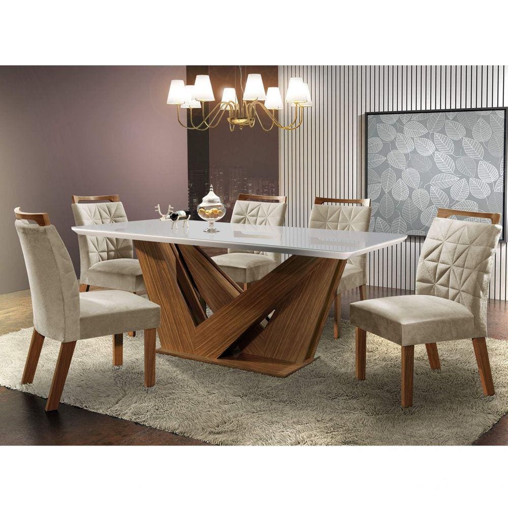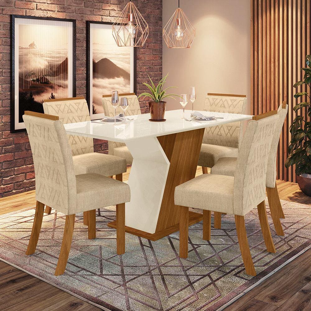 Conjunto Sala de Jantar Mesa Tampo em MDF/Vidro e 6 Cadeiras Apolo Chanfro Premium Yescasa Pena Bega/Castanho Prêmio/Laka Off White Yescasa R$999,00 R$0,00