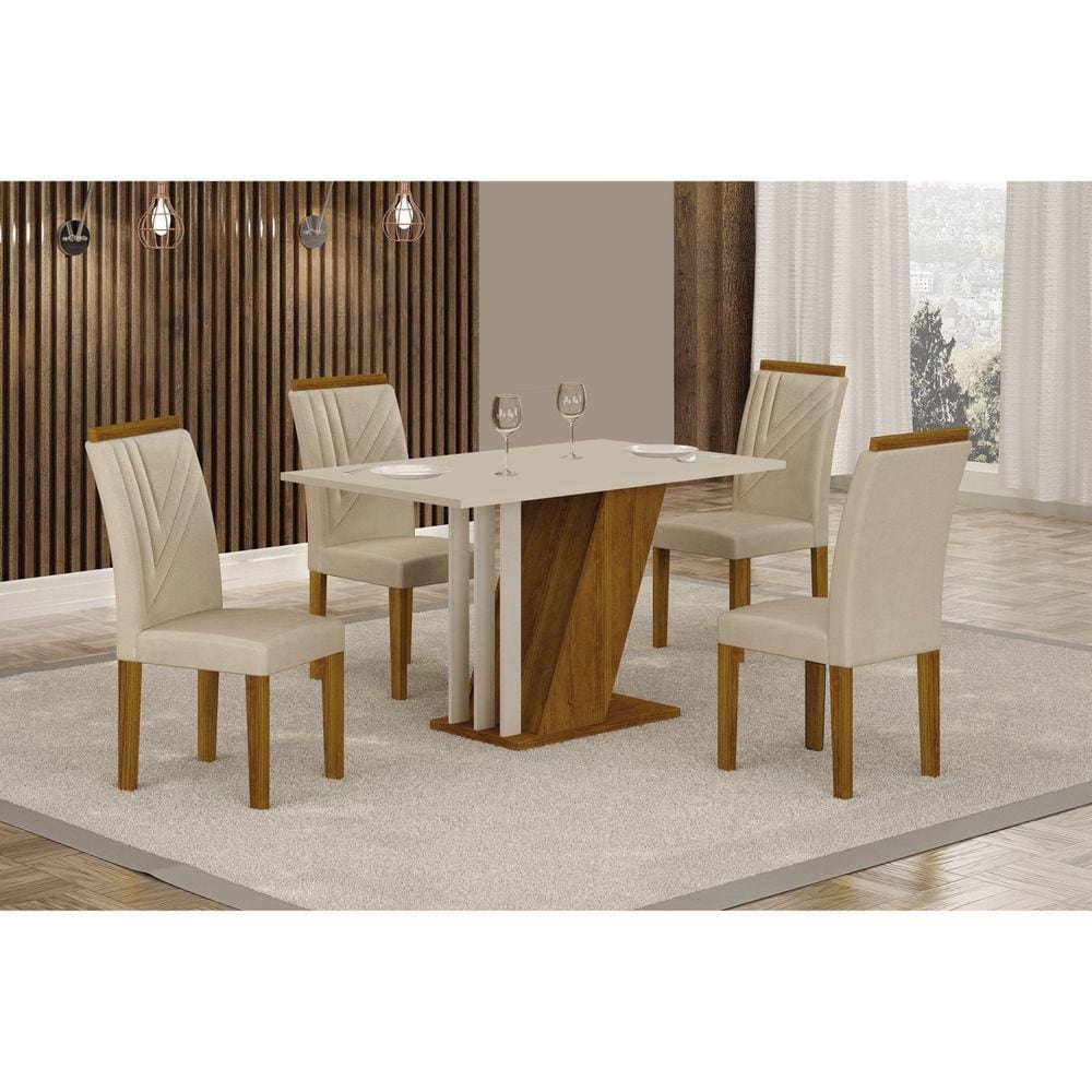Conjunto Sala de Jantar Mesa Tampo de Vidro/MDF Agata e 4 Cadeiras Paola Cimol Nature/Off White/Nude R$499,00 R$0,00